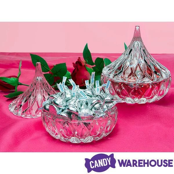 Classic Hershey’s Kisses milk chocolate morsels with shiny silver wrappers! These bite-sized, distinctively shaped gems of creamy, smooth chocolate are as popular today as when they first appeared in 1907. Each piece is made with love! The classic white paper ribbons feature the word “Kisses” on every piece.