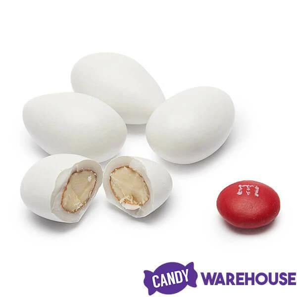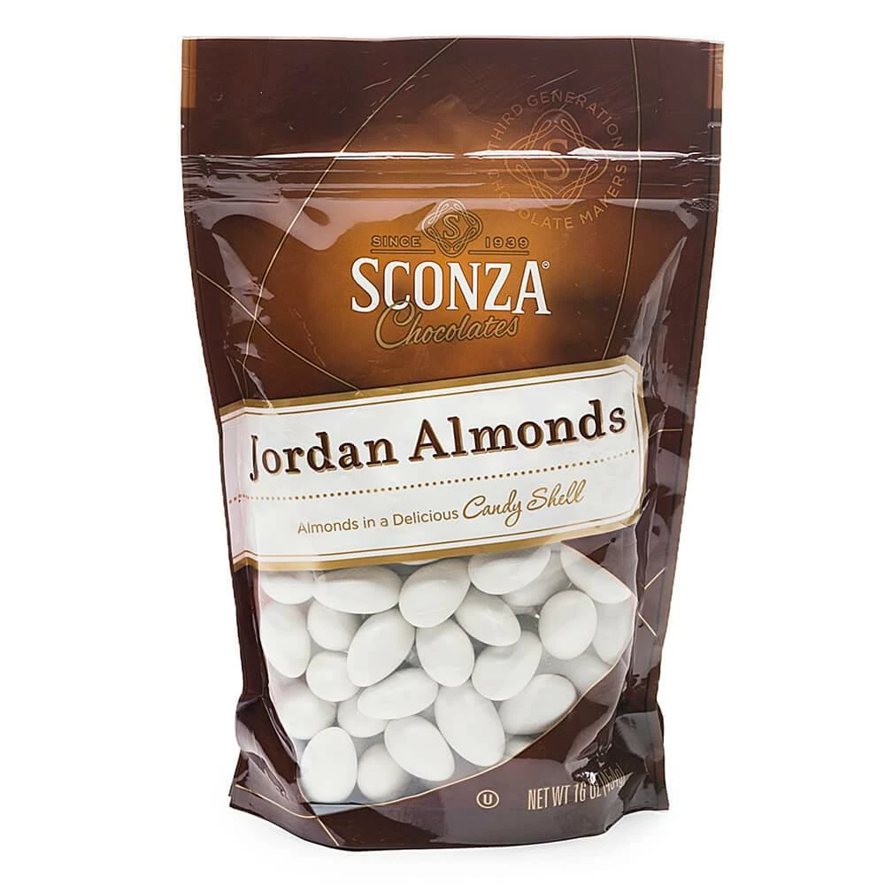 Fresh and delicious White Jordan Almonds! Originating in Mediterranean and Middle Eastern countries, the honored tradition of incorporating sugar-coated almonds into a wedding celebration symbolizes good luck wishes for the newlywed couple. With their bittersweet taste, fresh almonds signify the highs and lows of life. A sweet, colorful candy coating represents the wish that the newlyweds’ life will be more sweet than bitter. Tradition dictates that Jordan Almonds are grouped five to a party favor for wedding guests, with each hard, candy-coated confection a hope for health, wealth, happiness, fertility, and longevity. There’s no better way to uphold a centuries-old wedding tradition than with bright white sweets, and this batch of delicious Sconza Jordan Almonds fits that bill with flair and finesse. Fill a paper sleeve with a handful of five and seal it with a sticker, or wrap a slip of tulle around a shiny grouping and tie it with a color-coordinated bow. Your guests will be glad you did!