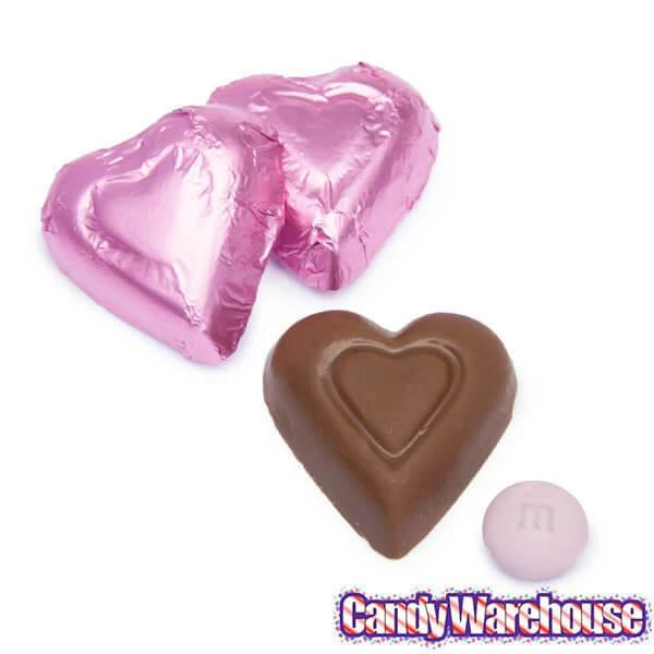 Your heart will melt when you taste these scrumptious heart-shaped milk chocolates wrapped in pink metallic foils!