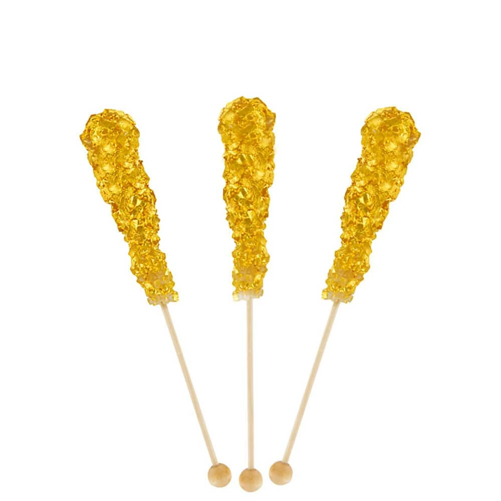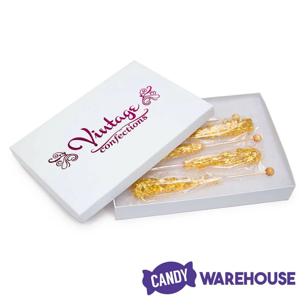 Gift box contains 5 Gold Rock Candy Swizzle Sticks.